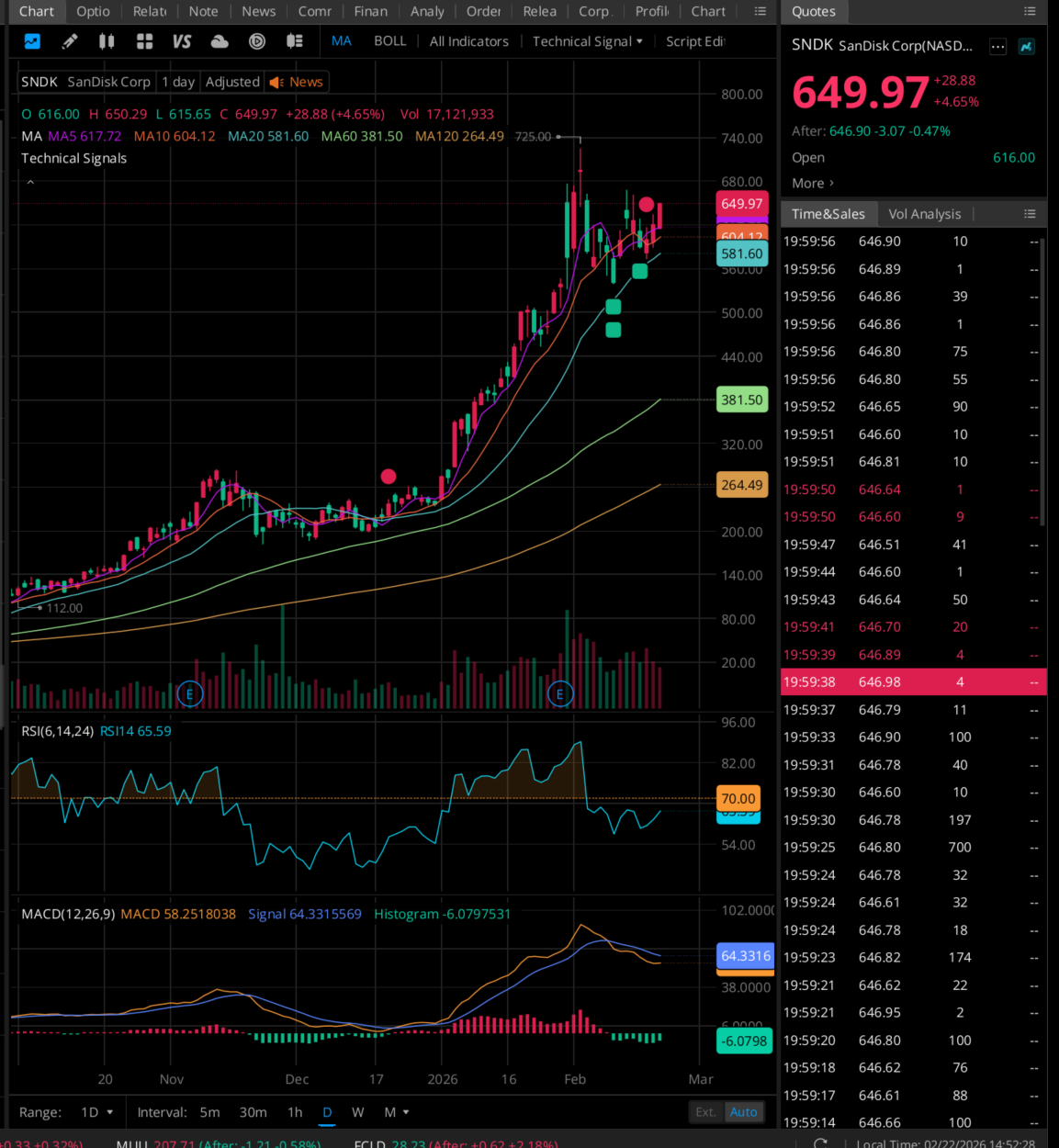 샌디스크의 주가는 현재 2025년 나스닥 독립 상장 이후 전형적인 '성장주'의 궤적을 그리며 우상향하고 있습니다.