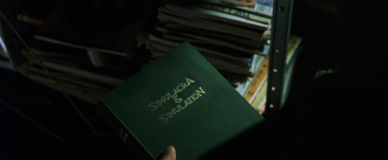 물론 영화 자체가 딱 하나의 메시지만 담고 있는 건 아니다. 플라톤의 동굴, 보드리야르의 시뮬라크르, 사이버펑크 장르의 문법 — 이 모든 게 동시에 들어 있다. 시뮬라크르는 프랑스 철학자 장 보드리야르가 쓴 개념이다. 원본 없는 복사본이 현실을 대체해버린 상태 — 가짜가 진짜처럼 유통되다 못해 결국 가짜가 진짜가 되는 것이다. 매트릭스 속 가상현실이 딱 그 구조다. 영화 초반에 네오가 데이터를 숨겨두는 책이 실제로 보드리야르의 저서 《시뮬라시옹》이다. 하지만 릴리의 발언 이후, 영화의 특정 요소들이 다르게 읽히기 시작했다.