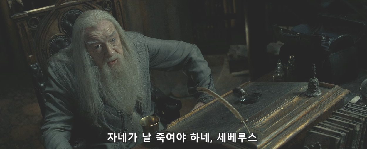 원작 소설에서는 덤블도어가 사후에도 초상화를 통해 스네이프에게 실시간 작전을 지시하며 전쟁을 승리로 이끈다. 반면 영화에서는 관객의 이해를 돕기 위해 주로 살아생전의 회상 장면으로 이 대화들을 처리했다.