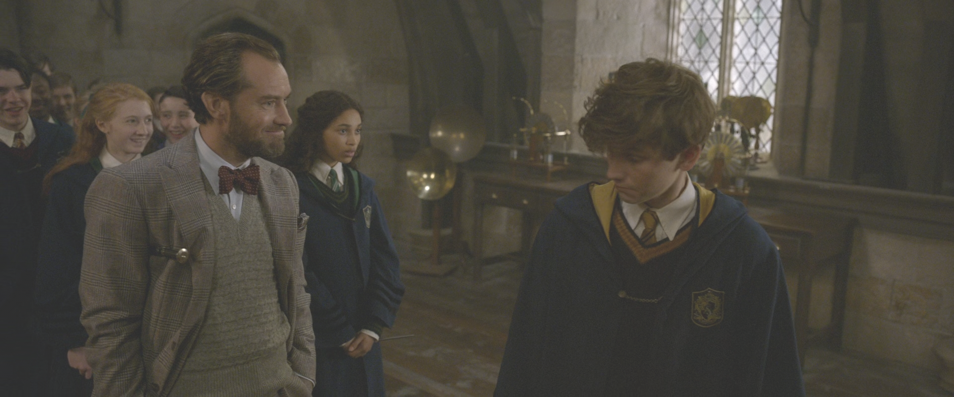 신비한 동물들은 젊은 날의 덤블도어를 직접 보여준다. 호그와트 교수이고, 아직 그린델왈드와 직접 맞설 수 없는 상태다. 두 사람이 젊은 시절 맺은 혈맹이 마법적 계약 객체로 실존하기 때문이다.